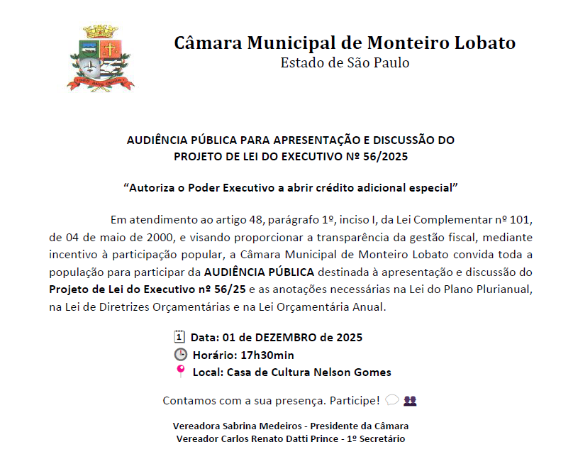 Audiência Pública - Discussão do Projeto de Lei do Executivo nº 56/2025