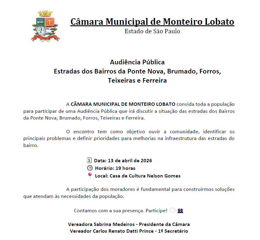 Audiência Pública - Estradas dos Bairros da Ponte Nova, Brumado, Forros, Teixeiras e Ferreira