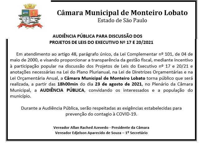 Audiência Pública - Discussão dos Projetos nº 17 e 20/2021