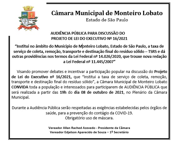 Audiência Pública - Discussão do Projeto nº 16/2021