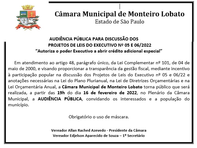 Audiência Pública - Discussão dos Projetos nº 05 e 06/2022