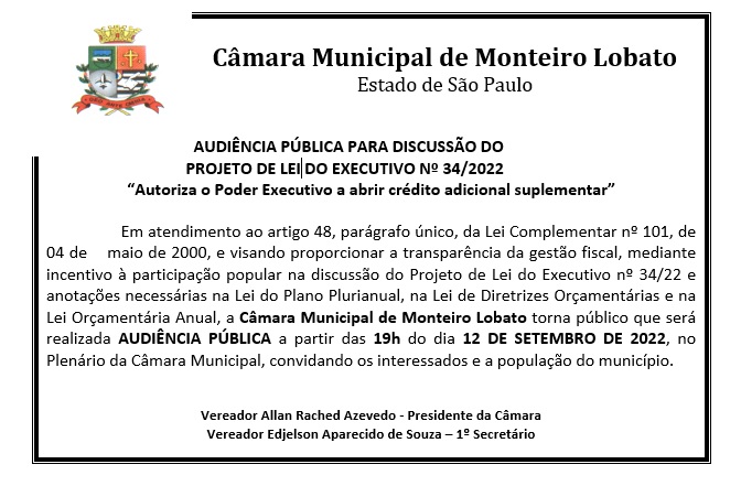 Audiência Pública - Discussão do Projeto nº 34/2022