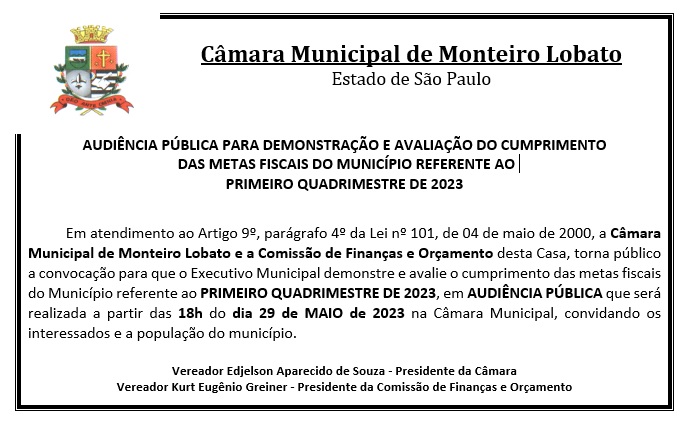 Audiência Pública - Avaliação das Metas 1º Quadrimestre 2023