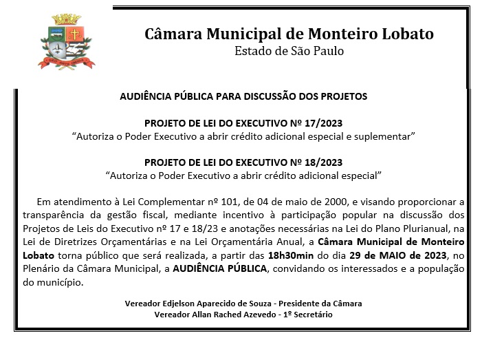 Audiência Pública - Discussão dos Projetos nº 17 e 18/2023