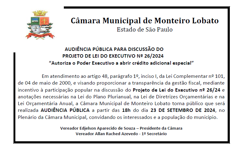 Audiência Pública - Discussão do Projeto nº 26/2024