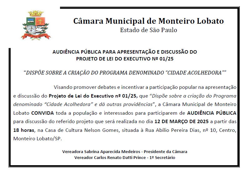 Audiência Pública - Discussão do Projeto de Lei do Executivo nº 01/2025
