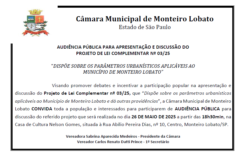 Audiência Pública - PLC nº 03/2025 - Parâmetros Urbanísticos aplicáveis ao Município