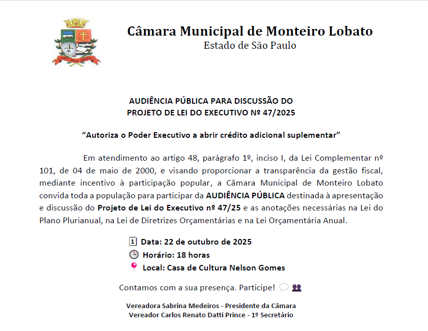 Audiência Pública - Discussão do Projeto de Lei do Executivo nº 47/2025