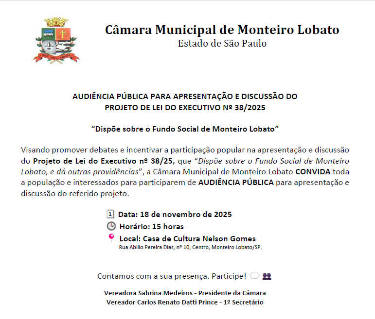 Audiência Pública - Discussão do Projeto de Lei do Executivo nº 38/2025